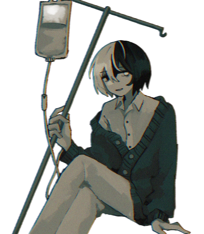 身長168cm、痩身。半分色素が抜けた黒髪。左目は白く濁っている。