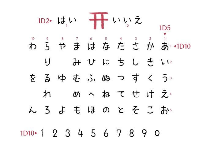 50音の場合は段が【1D10】、行が【1D5】に対応する文字